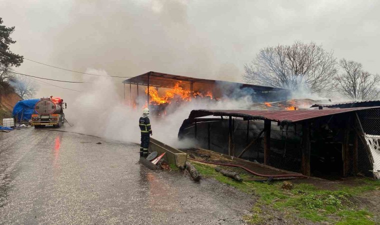 Yaşanan yangına ilişkin bilgi veren dam sahibi Hasan Dağlı, "Yıldırım düştü. Bir anda alev aldı. Büyükbaş hayvanlarımızı son anda kurtardık. 2 bine yakın saman balyamız maalesef yandı. Maddi boyutunun ne olduğunu bilmiyoruz ama çok şükür canımıza zarar gelmedi. 45 yıllık birikimimin yarısı gitti" dedi.