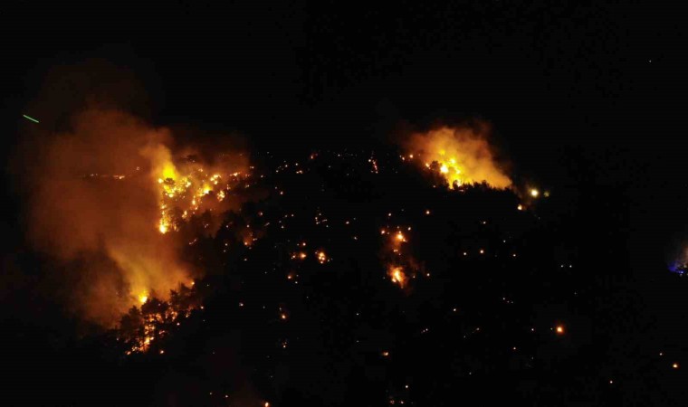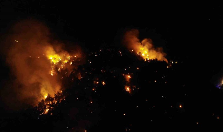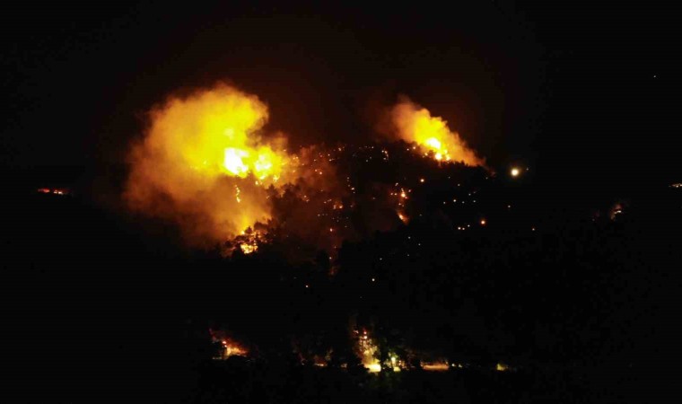 Çanakkale merkeze bağlı Sarıbeyli Köyü yakınlarında ormanlık alanda saat 22.30 sıralarında başlayan orman yangını dron ile görüntülendi. Ekiplerin yangını karadan kontrol altına alma çalışmaları devam ediyor.