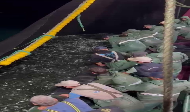 Çanakkale’nin Bozcaada ilçesinde gırgır teknesi ile açılan balıkçılar tek seferde 30 ton sardalya avladı.