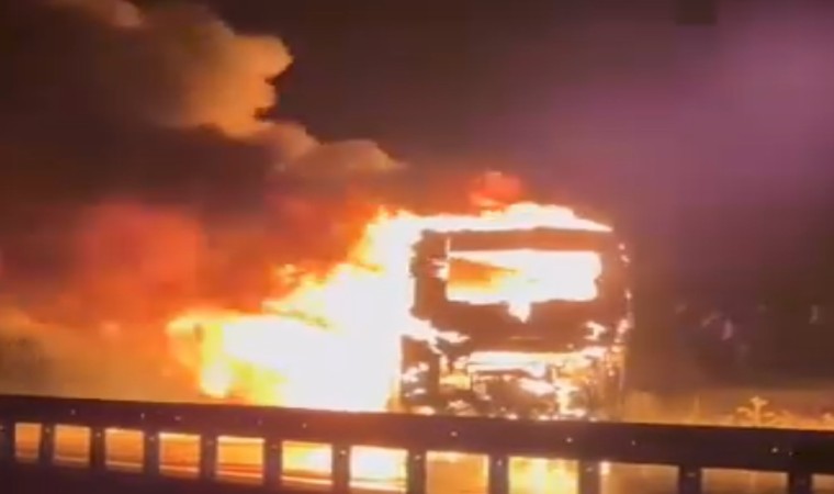 Öte yandan, otobüsün yanma anı bir vatandaş tarafından cep telefonu ile saniye saniye kaydedildi.