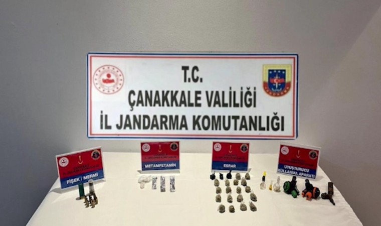 Çanakkale İl Jandarma Komutanlığı ekipleri, uyuşturucu madde imal ve ticareti yapanlara geçit vermiyor. Ekipler, il dışından kente getirilen uyuşturucu maddelerin satılmasını engellemek ve zehir tacirlerinin yakalanması için çalışma başlattı. Çanakkale, Lapseki ve Ayvacık ilçelerinde eş zamanlı düzenlenen operasyonda 17 GK 743 ve 35 EF 265 plakalı araçlar ile şüphelilerin ikametlerinde narkotik köpeği ile yapılan aramalarda 11 gram metamfetamin, bin 565 gram esrar maddesi, 3 uyuşturucu madde kullanma aparatı, öğütücü, 12 sentetik hap, hassas terazi, tabanca, 48 tabanca fişeği, 2 av tüfeği kartuşu ele geçirildi.