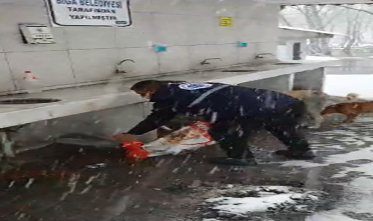 Çanakkale’de dün öğleden sonra başlayan ve devam eden kar yağışı hayatı olumsuz etkiledi. Biga ilçesinde belediye ekipleri tarafından mesire alanları ve besleme noktalarına sahipsiz sokak hayvanları için kuru mama bırakıldı. Bir belediye personelinin sokak hayvanlarına oyun havası eşliğinde mama bırakması ise eğlenceli görüntüler ortaya çıkardı.