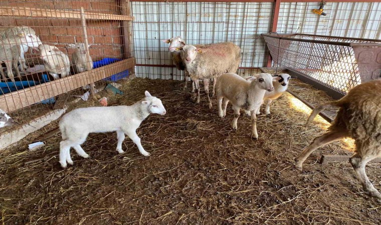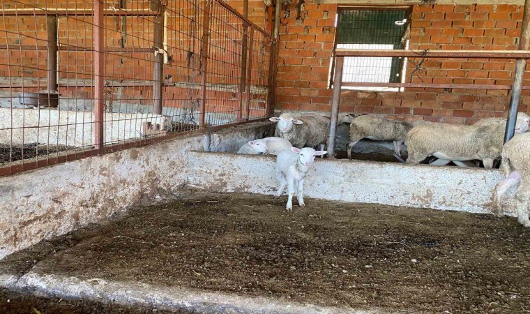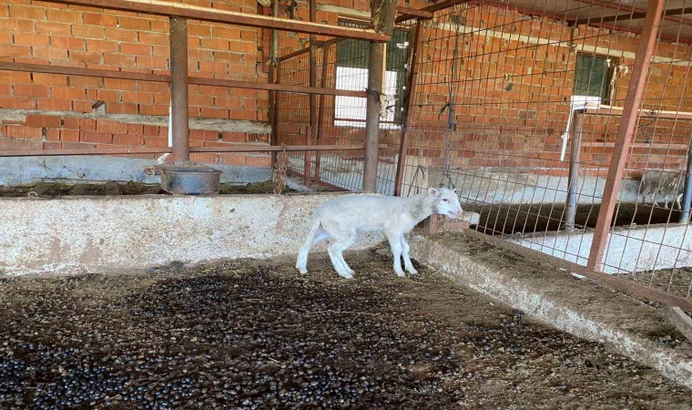 Annesinin yanından ayrılmayan sakız melezi cinsi kuzunun 5 ayaklı olmasından kaynaklanan bir sorunun olmaması da üretici Yılmaz’ı sevindirdi.