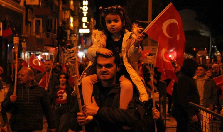 Çanakkale’de, Cumhuriyet’in 101’inci yıldönümü olan 29 Ekim Cumhuriyet Bayramı’nda Valilik tarafından düzenlenen fener alayına binlerce kişi katıldı. Fener alayında vatandaşlar, Cumhuriyet’in 101’inci yıldönümünü kutlamak için ellerinde meşaleler ve Türk bayraklarıyla yürüdü. Yürüyüş sırasında vatandaşlar ‘Mustafa Kemal’in Askerleriyiz’, ‘Ne Mutlu Türküm Diyene’ sloganları atıp, ‘Andımız ve İzmir Marşları’nı söyledi.