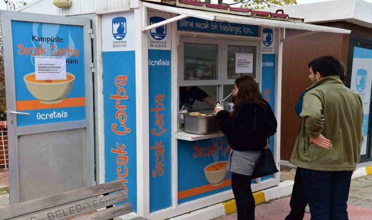 Çanakkale Belediyesi’nin üniversite öğrencilerinin güne sıcak bir başlangıç yapması amacı ile başlattığı sıcak çorba ikramları bu yıl da devam ediyor.