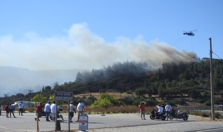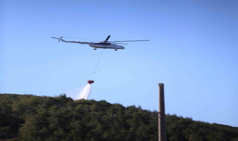 Yangın ekiplerin havadan ve karadan müdahalesiyle kontrol altına alındı. Bölgede soğutma çalışması devam ederken, yangında 2 dönüm alan zarar gördü.