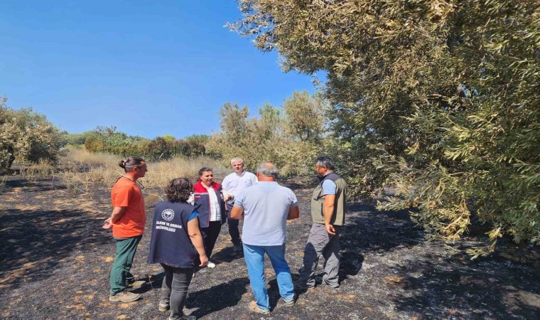 Çanakkale İl Tarım ve Orman Müdürü Nazan Türkarslan, Eceabat İlçe Tarım Müdürü Yücel Tokgöz, Büyükanafarta Köyü Muhtarı Hasan Alyıldız ve İl Tarım ve Orman Müdürlüğü teknik personeli ile birlikte Büyükanafarta köyünde meydana gelen yangından etkilenen alanlarda tarım arazisi varlığının tespiti yönünde incelemelerde bulundu.