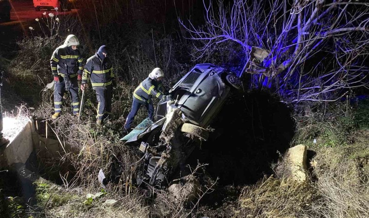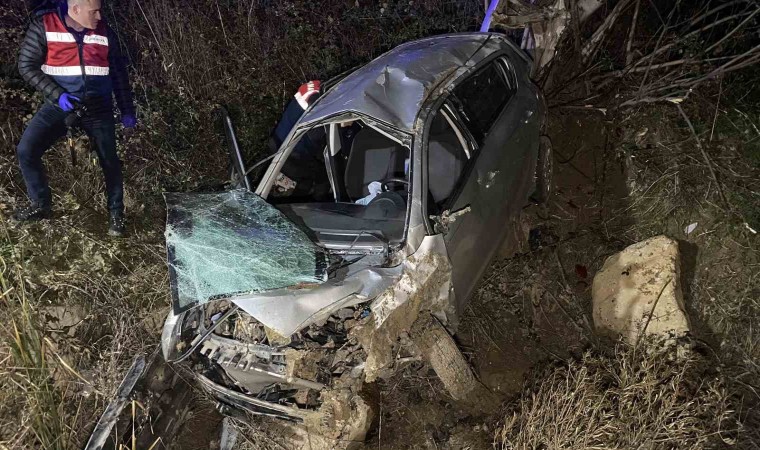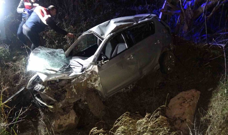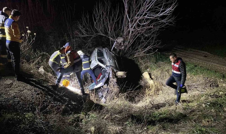 Çanakkale’de kontrolden çıkan otomobilin şarampole yuvarlandığı kazada sürücü hayatını kaybetti.