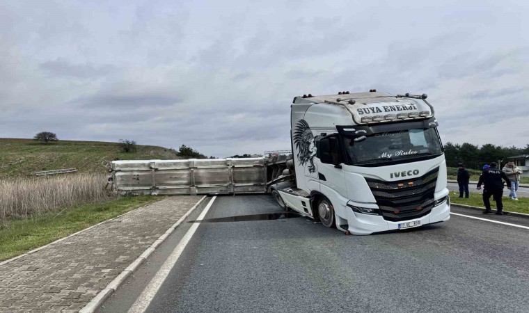 Çanakkale’nin Gelibolu ilçesinde seyir halindeki tırın açılan dorsesi, Plaka Tanıma Sistemi’ne (PTS) çarptı. Kaza sonucu dorse ve PTS devrildi.
