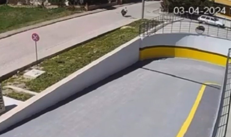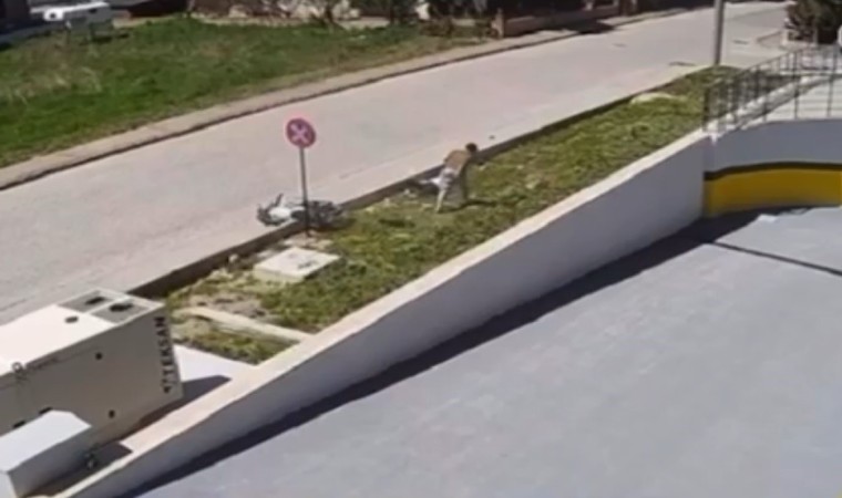 Çanakkale’nin Biga ilçesinde tek teker üzerinde seyreden motosiklet refüje çarptı. 2 kişinin yaralandığı kaza güvenlik kamerasına yansıdı.