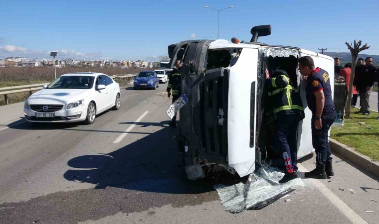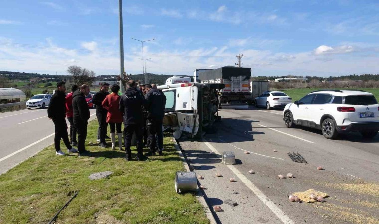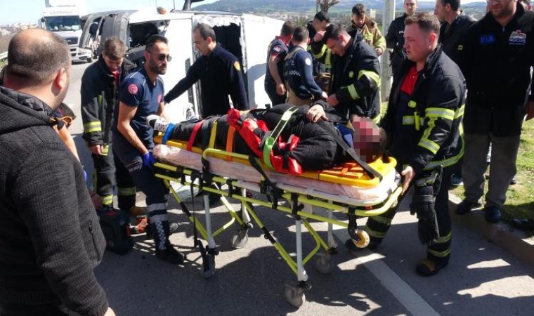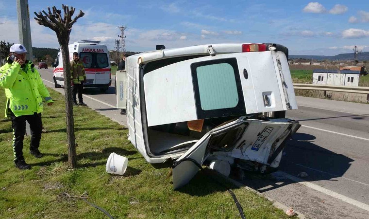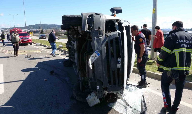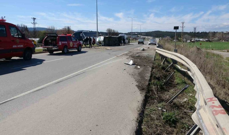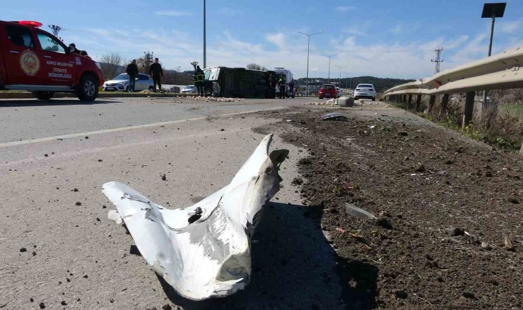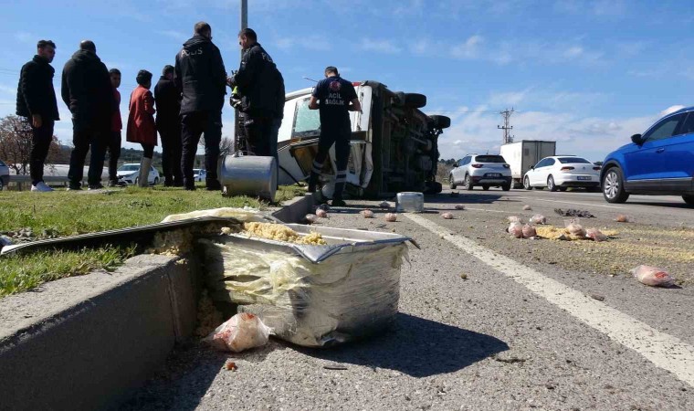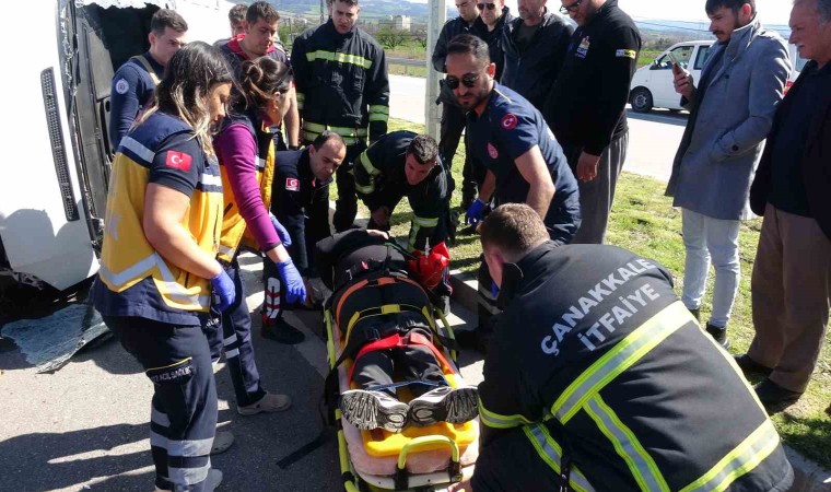 Çanakkale’de yemek taşıyan minibüs iddiaya göre lastiğini patlaması sonucu yol kenarındaki çelik bariyerlere çarpıp devrildi. Minibüste bulunan yemekler ve ekmekler yola savrulurken, yaralı sürücü Cumali Sarıoğlu’nu (29) sıkıştığı yerden itfaiye ekipleri tarafından çıkarılarak, hastaneye kaldırıldı.