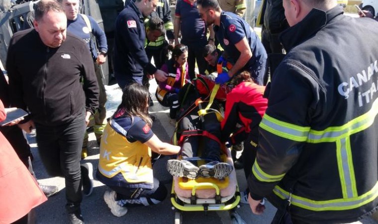 Kaza, saat 11.00 sıralarında Çanakkale-Ezine Karayolu üzerinde meydana geldi. Ezine istikametine seyir halinde olan Cumali Sarıoğlu idaresindeki 34 GJZ 77 plakalı yemek taşıyan minibüs, iddiaya göre, lastik patlaması sonucu direksiyon hakimiyetini kaybetti. Minibüs çelik bariyerlere çarptıktan sonra devrildi. Kazayı gören diğer sürücüler durumu polis ve sağlık ekiplerine bildirdi. Olay yerine itfaiye ekipleri de sevk edildi. Minibüste sıkışan ismi öğrenilemeyen sürücü Çanakkale ve Kepez Belediyelerinin itfaiyeleri ekipleri tarafından çıkarıldı. Sağlık ekiplerinin müdahalesinin ardından yaralı sürücü ambulansla Mehmet Akif Ersoy Çanakkale Devlet Hastanesine kaldırılarak, tedavi altına alındı. Araçtan çevreye dağılan yemeklerde Karayolları ekiplerince temizlendi, minibüs ise çekici yardımıyla yoldan kaldırıldı.
