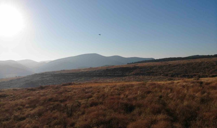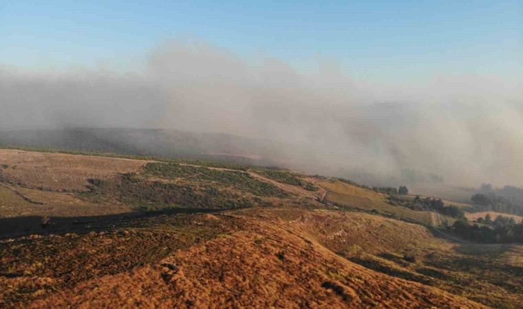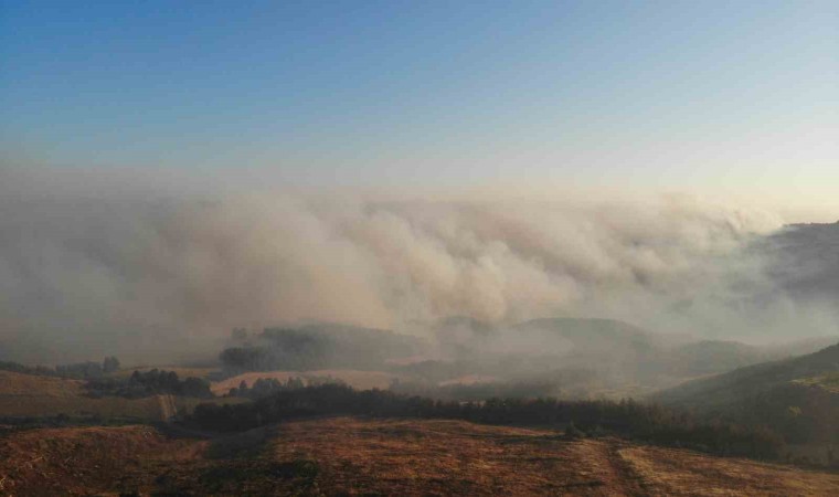 Öte yandan yangın dron ile havadan görüntülendi. Görüntülerde yangının geniş bir alanda devam ettiği ve helikopterlerin havadan yangına müdahale ettiği görülüyor.