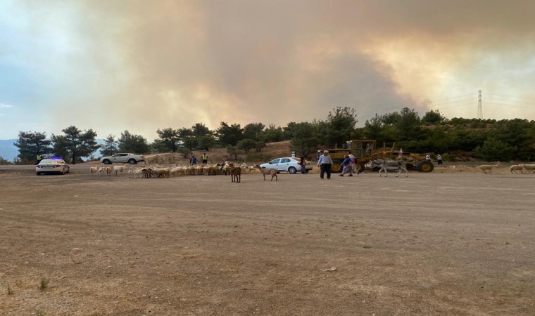 Çanakkale’deki orman yangınına havadan ve karadan müdahale devam ediyor. Kayadere köylüleri hayvanlarını kurtarmak için boş arazilere götürmeye çalışıyor.