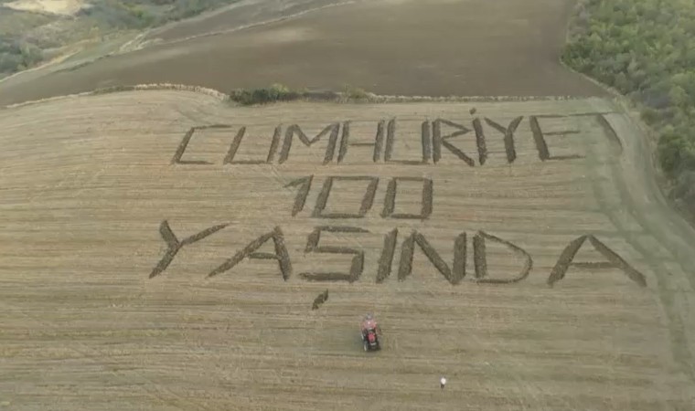 Çanakkale’nin Lapseki ilçesinde yaşayan 24 yaşındaki Birol Günal, Cumhuriyetin 100’üncü yıldönümü dolayısıyla 5 saatlik bir çalışmayla arazisine traktörüyle ‘Cumhuriyet 100 Yaşında’ yazdı. Çiftçilik yaptığını ifade eden Günal, “Cumhuriyetimizin kuruluşunun 100. yılında bu tür bir farkındalık yapmak istedim. Sonuçta Cumhuriyetimiz kolay kurulmadı, kolay gelmedik bu günlere. Dedelerimizden zamanla neler dinledik. Gazi Mustafa Kemal Atatürk, Cumhuriyeti kolay kurmadı. ‘Cumhuriyet 100 yaşında’ yazısını 5 saat uğraştım ve uzun süre bu tarlayı sürmeyeceğim” dedi.