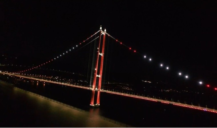 Öte yandan Türkiye’nin vizyon projelerinden biri olan ve açılışı 18 Mart 2022 tarihinde Cumhurbaşkanı Recep Tayyip Erdoğan tarafından yapılan dünyanın en uzun orta açıklıklı 1915 Çanakkale Köprüsü, Cumhuriyetin 100’üncü yıldönümü nedeniyle kırmızı ve beyaz ışıkla aydınlatıldı. Dronla çekilen 1915 Çanakkale Köprüsü, adeta görsel bir şölen sundu.