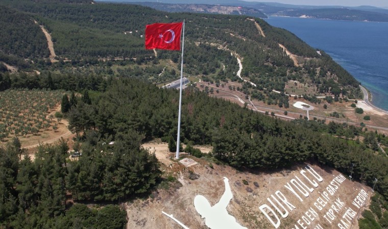 Çanakkale’nin ve boğazın simgelerinden ’Dur Yolcu’ yazısının bayrak direği, göndere çekilen Türk bayrağının rüzgara karşı direncini artırmak için yenilendi. 55 metre yüksekliğe sahip bayrak direğindeki yenilenen 10x15 metre ebadında olan Türk bayrağı da Çanakkale Boğazı’nın rüzgarıyla dalgalanmaya başladı.
