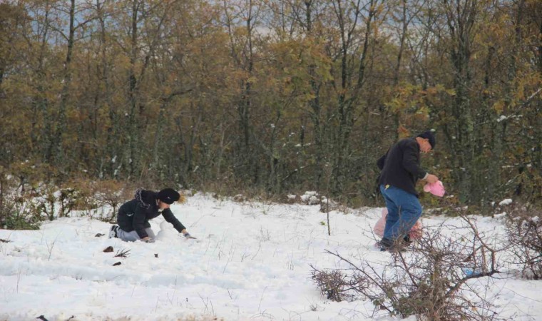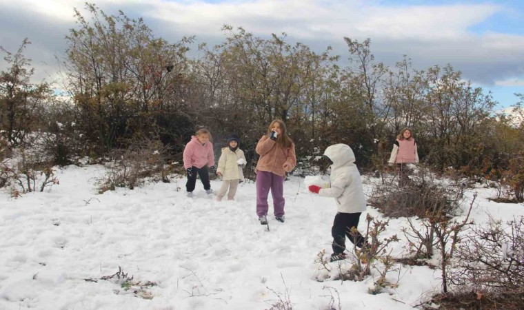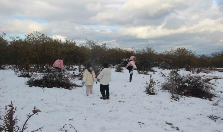 Çanakkale’nin Çan ilçesine bağlı Terzialan beldesi eski orman kulesi mevkiinde yağan kar çocukları sevindirdi.