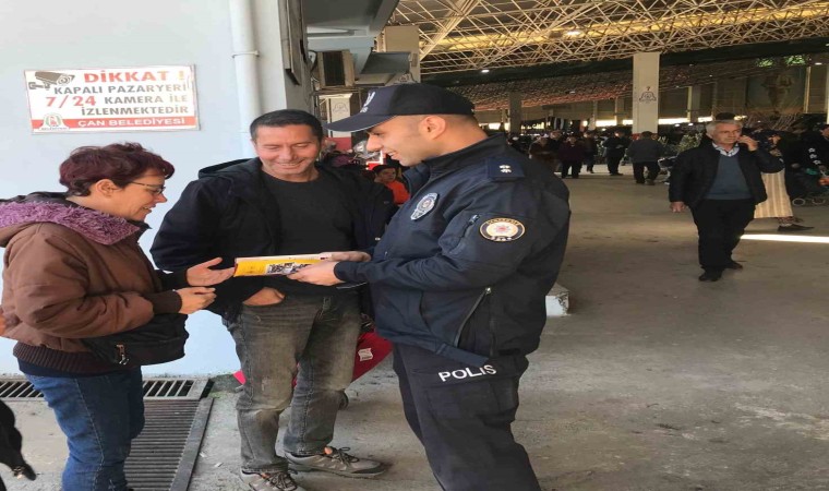 Çanakkale’nin Çan ilçesinde emniyet personeli tarafından KADES broşürleri dağıtıldı.