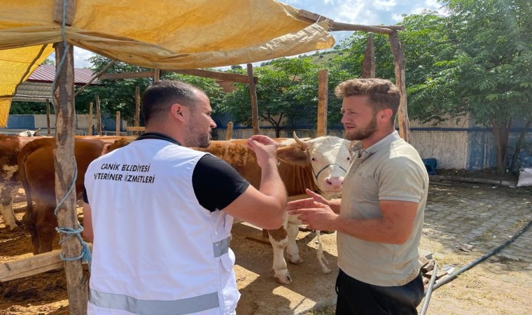 CANİK BELEDİYESİ, İLÇE GENELİNDE KURBAN BAYRAMI HAZIRLIKLARINI YOĞUN BİR ŞEKİLDE SÜRDÜRÜYOR. VETERİNER HEKİMLERİ SATIŞTA OLAN TÜM KURBANLIK HAYVANLARI TEK TEK DENETLİYOR.