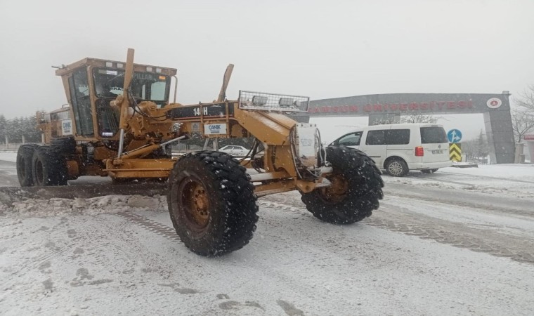Samsun’un Canik Belediyesi, karla kaplanan yollarda temizleme çalışmalarını sürdürüyor.
