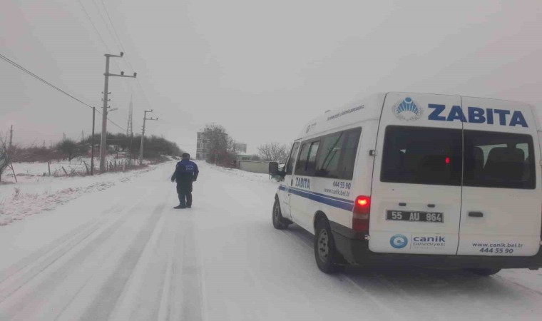Canik Belediyesi tarafından yapılan açıklamada, ekiplerin ilçe genelinde kar yağışlarına ve olumsuz hava şartlarına karşı çalışmalarını yoğun bir şekilde sürdürdüğü belirtilirken, vatandaşlara kar yağışlarına ve gizli buzlanmaya karşı dikkatli ve tedbirli olmaları konusunda hatırlatmalarda bulunuldu. Vatandaşların, olumsuz durumlar Canik Belediyesi Çağrı Merkezi üzerinden talepte bulunabileceği kaydedildi.