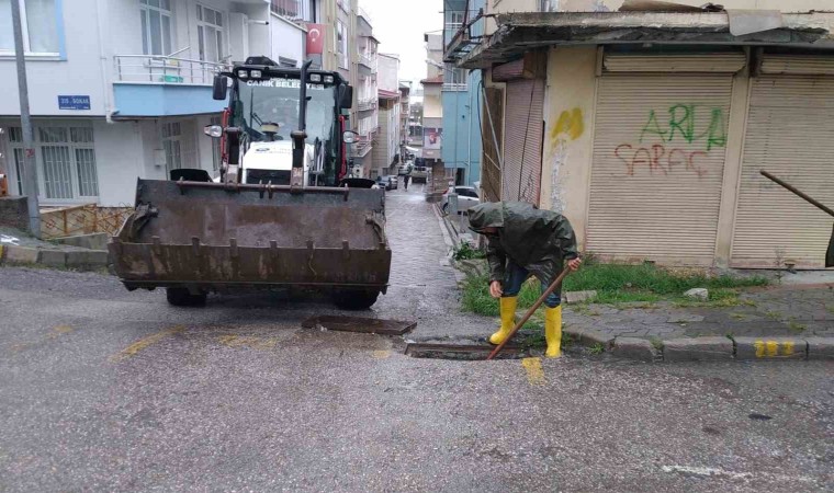 Sağanak yağışın etkili olduğu Samsun’un Canik ilçesinde ekipler, alarm durumuna geçerek gerekli önlemleri aldı.