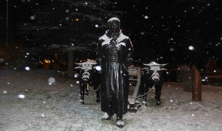 Çankırı’da etkili olan kar yağışı ile şehir merkezi beyaza büründü. Karla kaplanan tarihi ve kültürel yapılarda kartpostallık görüntüler oluştu.