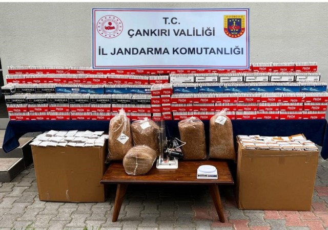 Çankırı'da jandarma ekiplerinin eş zamanlı operasyonunda, 80 bin 120 adet makaron ele geçirildi. Çankırı İl Jandarma Komutanlığı, 2 şüpheliye yönelik gerçekleştirdiği 5 adresteki operasyonda büyük bir miktar doldurulmuş makaron, 21 kilogram sahte bandrollü tütün, 1 adet sigara doldurma makinesi ve 1 adet hassas terazi bulundu. Yakalanan 2 şahıs hakkında adli işlem başlatıldı.