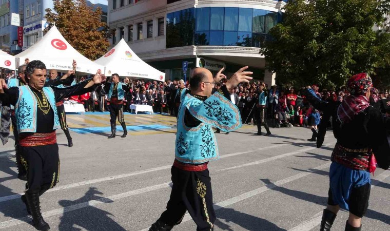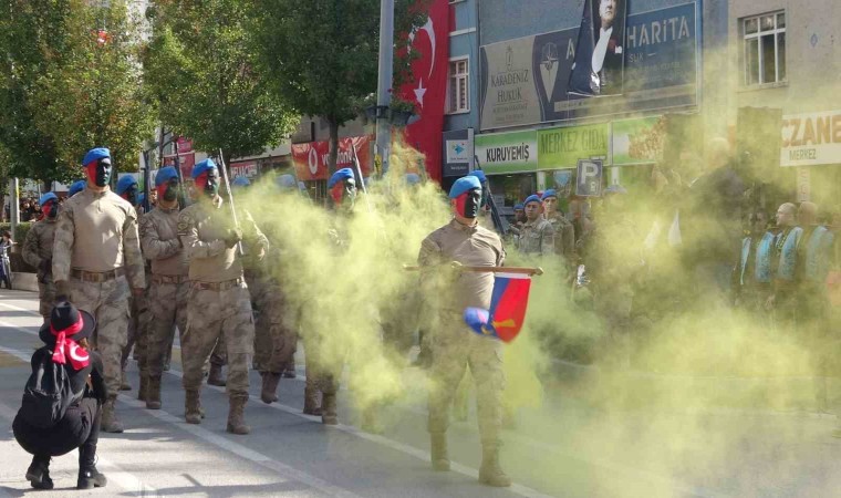 Çankırı’da Cumhuriyet’in ilanının 100. yıl dönümü coşkuyla kutlandı. Törende komandoların silahlı gösterileri izleyenleri mest etti.