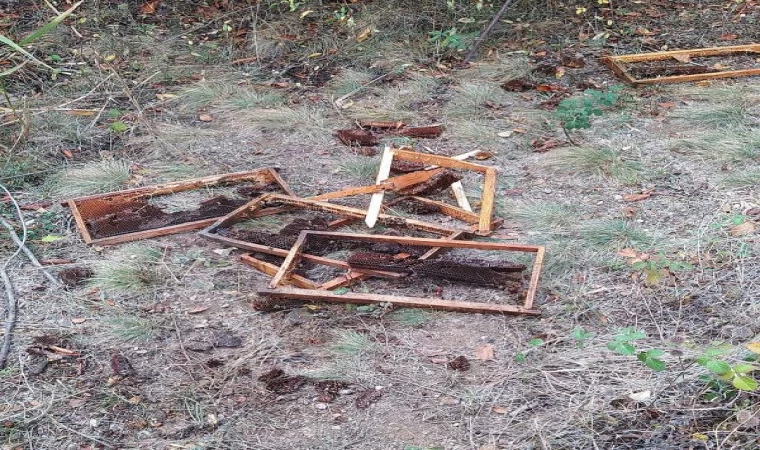 Ayı gelmemesi için gece bahçede müzik açtıklarını söyleyen Taş, "Ama yine gece gelmiş kovanlara zarar vermiş. Arıcılar panik içinde. Kovanları nereye götüreceğimizi düşünüyoruz. Çünkü kovanların yerini değiştirmek zorunda kalacağız. Bir hafta önce de bir komşumuzun 10 tane kovanı zarar görmüştü. Son bir ay içinde bu ayı saldırıları arttı" diye konuştu. (DHA)