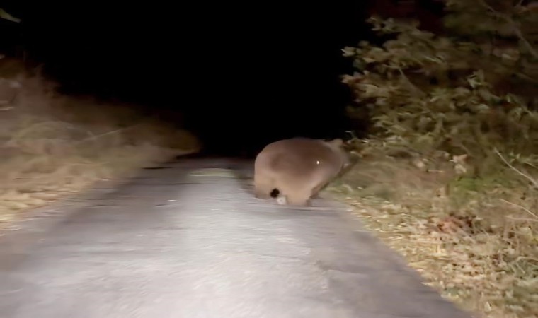 Çankırı’nın Ilgaz ilçesindeki bir köy yolunda seyir halinde olan aracın önüne çıkan ayı vatandaşlar tarafından görüntülendi.