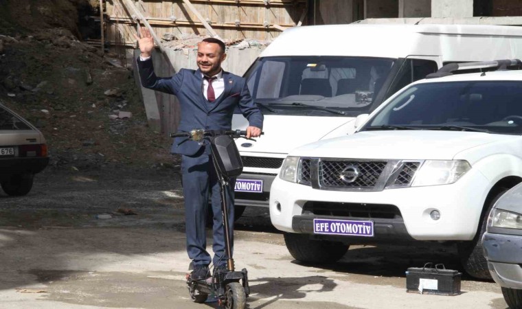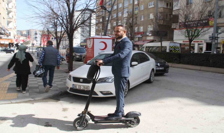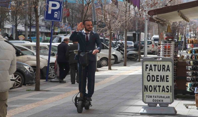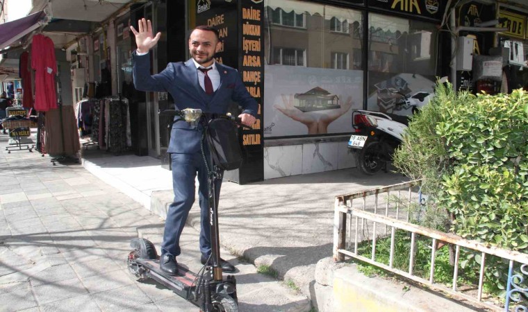 Çankırı’da bağımsız belediye başkan adayı olan Gökhan Taşcı, scooter’ıyla sokak sokak gezip oy istiyor.