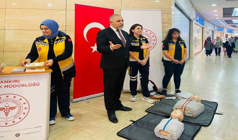 Çankırı’da sağlık ekipleri tarafından bir AVM’de vatandaşlara ilk yardım eğitimi verildi.