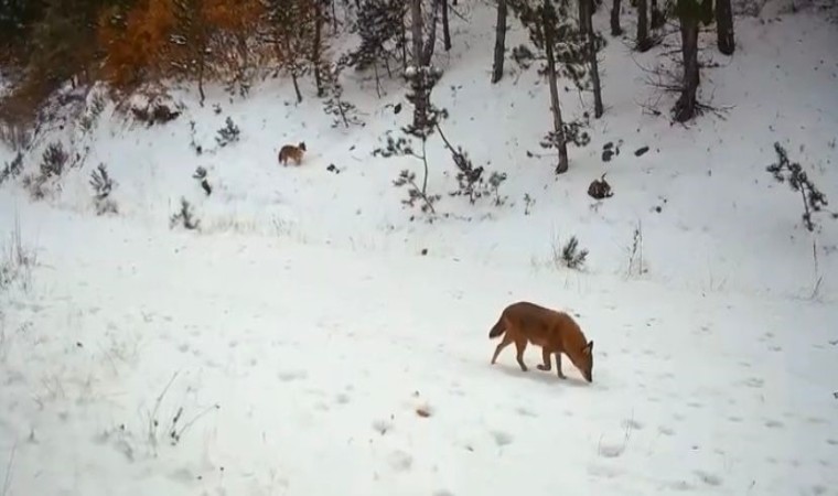 Çankırı’da karla kaplanan doğada ,yaşamlarını sürdüren yaban hayvanları fotokapanlar tarafından görüntülendi.