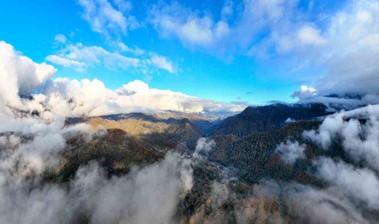 Artvin’in Hopa ve Borçka ilçeleri arasındaki Cankurtaran mevkiindeki ormanlar, sonbaharda sarı, turuncu ve yeşilin tonlarıyla rengarenk hale geldi. Manzarasıyla mest eden bölge havadan görüntülendi.