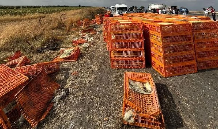 Canlı tavuk yüklü kamyon, otomobile çarpıp, devrildi: 3 yaralı
