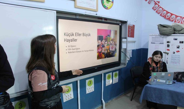 3 farklı atölye çalışması ile köydeki öğrencilere robot kültürünü aşılamayı hedeflediklerini ifade eden Hamulu, “Gittiğimiz her okulda, yaptığımız etkinlikler ve çalışmalarla öğrencilere robot kültürünü, sistem kültürünü aşılamayı hedefliyoruz. Öğrenciler lego setleri ile robot yapım süreçlerini öğreniyorlar. Aynı zamanda kendi geliştirdiğimiz robotu da İstanbul’dan buraya getirdik. O robotun da yapım süreçlerini inceleme fırsatı elde ediyorlar. Bunun dışında yapay zeka uygulamalarını da, günümüzün popüler olan yeni teknoloji diyebileceğimiz uygulamalarını da öğrencilerle buluşturuyoruz” diye konuştu.