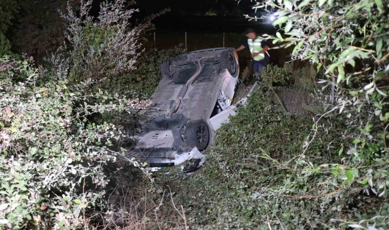 Sakarya’nın Akyazı ilçesinde iki otomobilin çarpışması neticesinde meydana gelen kazada, bir otomobil takla atarak kanala devrildi. Meydana gelen kazada her iki otomobilin sürücüsü yaralandı.