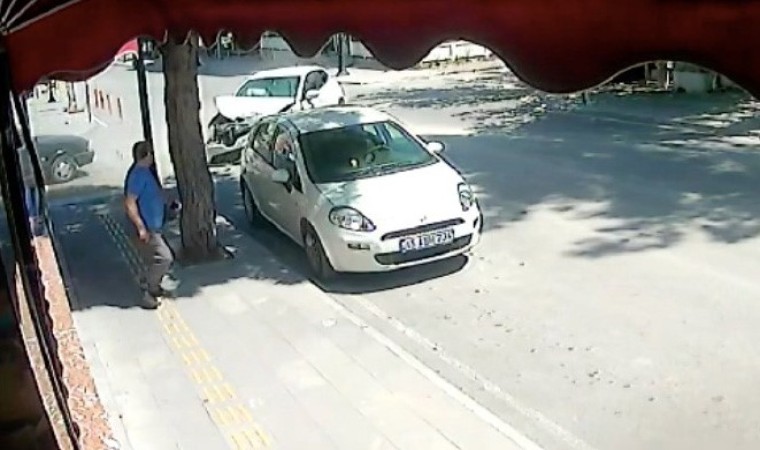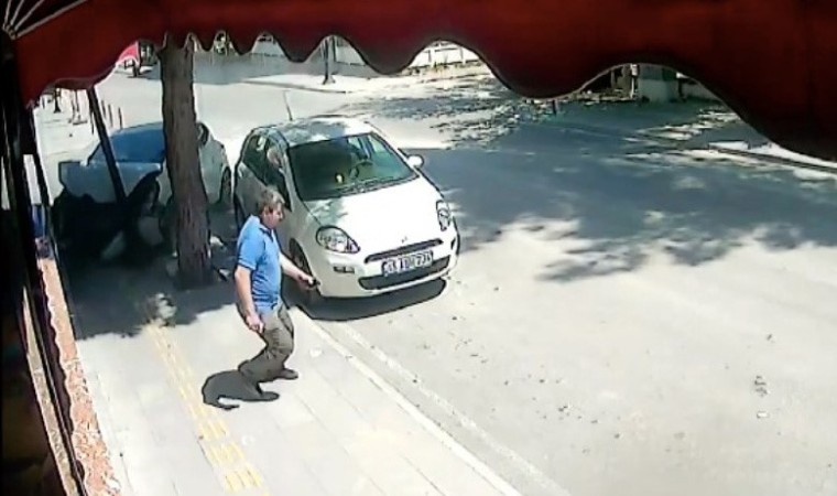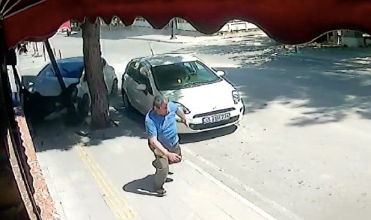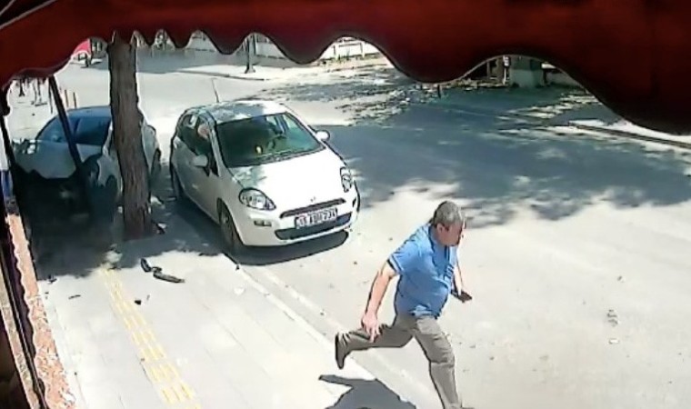 Çarpışmanın etkisiyle kontrolden çıkan savrulan otomobillerden biri kaldırıma çıkarken, kaldırımda yürüyen bir vatandaş otomobilin altında kalmaktan saniyelerle kurtuldu. Gürültüyü duyup arkasına dönen adam, otomobilin üzerine geldiğini görünce koşarak kaçtı.