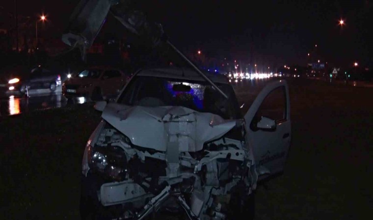 Antalya’da yağış nedeniyle kayganlaşan yolda çarpışan iki araçtan biri kontrolden çıkıp aydınlatma direğine çarptı. Kazada direğin üzerine devrildiği araçtaki 2 kişi yaralandı.