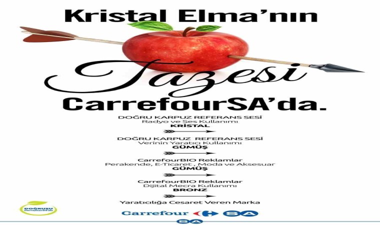 Organize gıda perakende sektörünün önde gelen markalarından CarrefourSA, ‘CarrefourBIO’ ve ‘Doğru Karpuz Referans Sesi’ reklam filmleriyle Kristal Elma’dan 4 ödülle döndü.