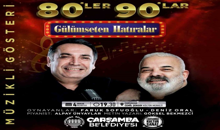 Ünlü isimler Faruk Sofuoğlu ve Deniz Oral’ın yer aldığı 80’ler 90’lar Gülümseten Hatıralar müzikli gösterisi 4 Aralık Pazartesi saat 19.30’da seyircinin karşısına çıkacak.