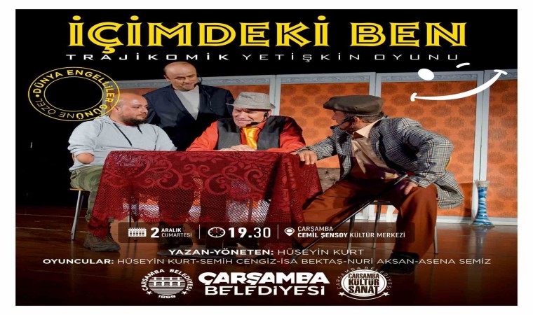 Samsun’un Çarşamba ilçesinde Dünya Engelliler Günü’ne özel hazırlanan “İçimdeki Ben” tiyatro oyunu 2 Aralık Cumartesi günü, “80’ler 90’lar Gülümseten Hatıralar” oyunu ise 4 Aralık Pazartesi günü sahnelenecek.