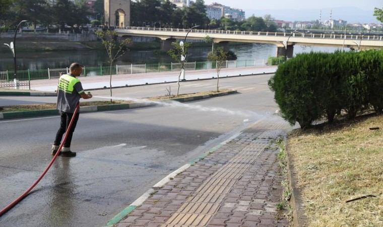 Samsun’un Çarşamba ilçesinde vatandaşların yoğunlukla kullandığı alanlar yıkanarak temizlendi.