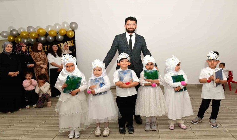 Atatürk İlkokulunun konferans salonunda düzenlenen program, saygı duruşu ve İstiklal Marşı’nın okunması ile başladı. Sak Camii İmamı Mehmet Çakar tarafından okunan Kur’an-ı Kerim tilavetinin ardından bir konuşma yapan İlçe Müftüsü Hamza Taşkulak, “Öğrencilerimiz 4-6 yaş Kur’an kurslarımız sayesinde Allah sevgisi, Peygamber sevgisi ile milli ve manevi değerlerine bağlı olarak yetişmekte ve yüce kitabımız Kur’an-ı Kerim ile erken yaşta tanışmaktadırlar. Büyük bir emek ve sabır ile bu eğitim öğretim dönemini tamamlayan öğrencilerimizi tebrik ediyor, çocuklarının ahlaki değerlerle yetişmesi ve donanması için hassasiyet ve özenle 4-6 yaş Kur’an kursuna gönderen kıymetli aileleri ve onları yetiştiren öğreticilerimize teşekkür ediyorum” dedi.