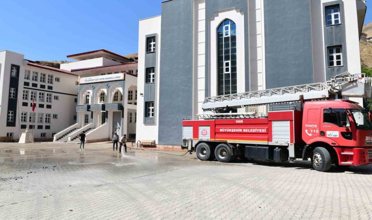 Çatak Belediyesi yeni eğitim öğretim yılı öncesinde okul bahçelerinde temizlik seferberliği başlattı. Öğrencilerin daha hijyenik ve sağlıklı bir ortamda eğitime başlaması için çalışma başlatan Çatak Belediyesi Fen İşleri Müdürlüğü ve Çatak İtfaiye Şefliği ekipleri, okul bahçelerini bir yandan yıkarken bir yandan da bahçede oluşan yabani otları temizledi.