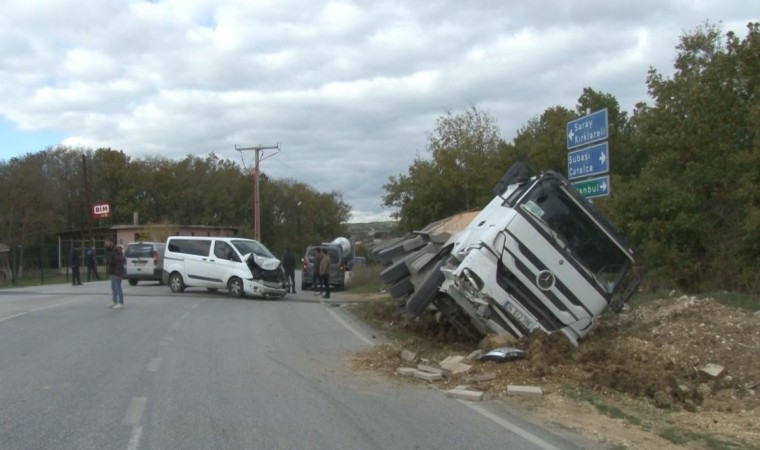 İstanbul’un Çatalca ilçesinde minibüse çarpan hafriyat kamyonu yol kenarına devrildi. Kazada minibüste bulunan 1 kişi yaralandı.