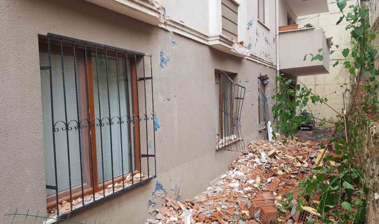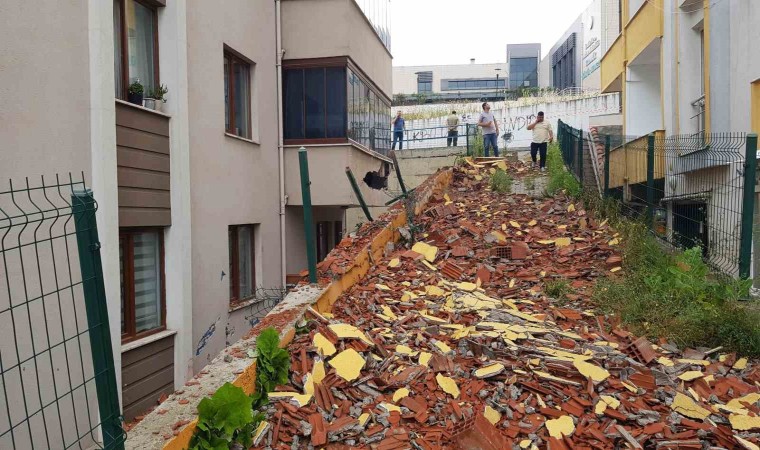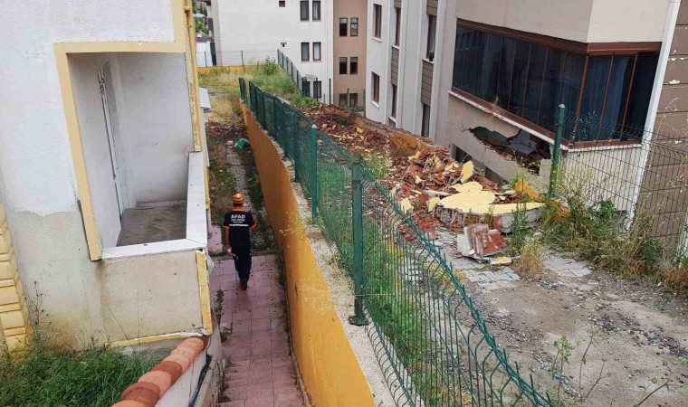 Bina sakinlerinden Tunahan Yıldırım, “Fırtına çıkınca elektrikler kesildi. Eşim aradı büyük bir ses oldu diye. Hemen geldim. Baktım yan apartmanın çatısındaki duvar bizim binanın üzerine çökmüş. İki balkonumuzda zarar var. Zemin kattaki dairede pencereler kırık” dedi.
