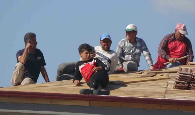Çatıda çalışan işçilerin seyir zevkine ne alevler ne de duman son verebildi
